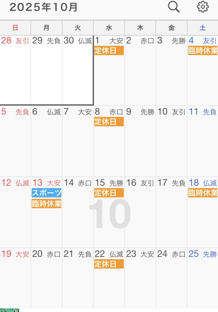 10月は水曜定と4日(土)、13日(月)、18日(土)がお休みになります。よろしくお願いします。